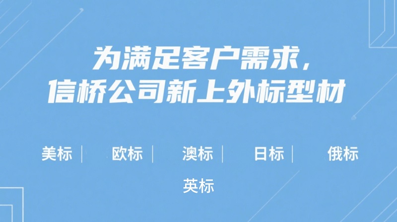 為提供更好的服務(wù),信橋公司新上外標型材:美標、歐標、澳標、英標、日標、俄標。